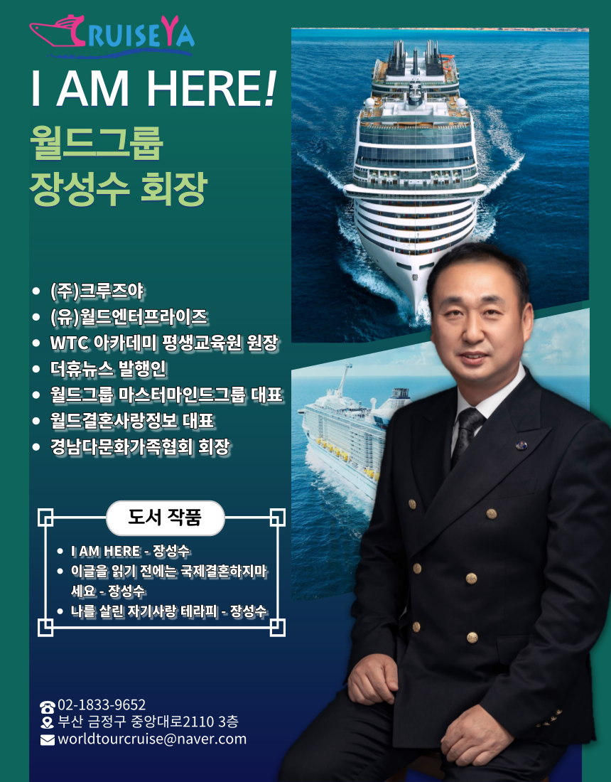 또한 신문사설립과 기업부설연구소를 설립하였고 고객들이 보다 쉽게 여행할 수 있도록 다양한 방법의 결제시스템을 도입하여 여행객들의 편의를 돕고있으며, (주)월드투어는 2023년 ISO9001인증으로 명실상부한 대한민국 최고의 크루즈 전문 여행사로 인증 받았으며, 2023년 3월 17일에 (주)크루즈야~라는 이름으로 변경하여, 동시에 3월 22일에 정식 등기되었습니다. (주)크루즈야는 한국 경제 성장에 기여하고자 하는 포부를 가지고 있습니다